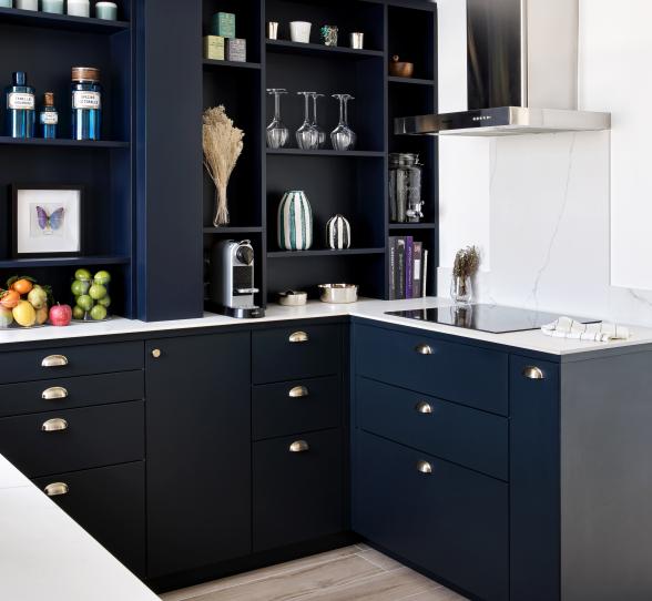 Profond et intense, notre Bleu nuit s'est rapidement hissé au palmarès de vos couleurs favorites. Version tableau ou cuisine ouverte, décliné sur des façades à cadre ou U-Shape, en laque mate ou en chêne peint, il s’est imposé comme un classique, intemporel et élégant. Loin d’être monotone, il se prête à toutes les associations.