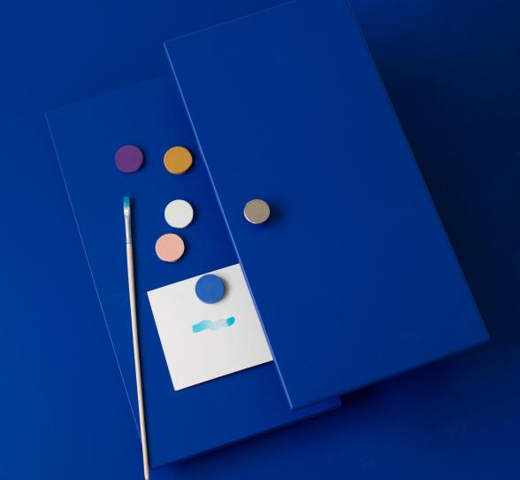 Adoptée dans une cuisine ouverte, la couleur permet de délimiter les espaces. Dans cette réalisation signée Atelier Varenne, le Bleu nuit se décline sur un meuble îlot qui trace les contours de la cuisine. Côté mur, notre Ciel voilé habille les modules hauts et bas tout en allégeant le décor. Comme un trait d’union, les carreaux de ciment installés au sol reprennent les mêmes teintes pour créer une unité dans la pièce.