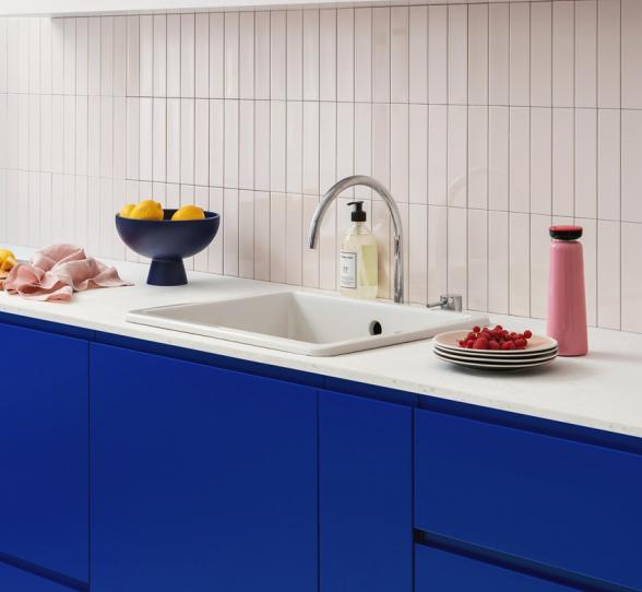 Au fil des années, nous avons également développé notre propre gamme d'accessoires pour sublimer votre intérieur. Vous trouverez ainsi sur notre eshop des plans de travail en stratifié et en compact, des meubles ouverts et des étagères flottantes, des éviers et des mitigeurs, des poignées en laiton, noires, chromées et en bois, et des peintures murales aux teintes de nos façades, produites en France par Ressource.